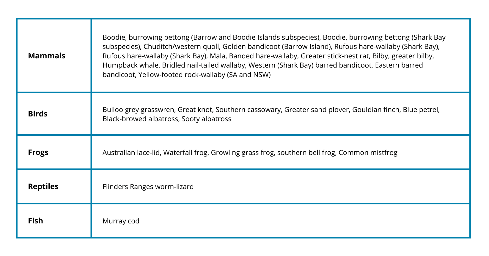 New research published in Biological Conservation has identified 29 threatened wildlife species that have been pulled back from the brink in Australia, including the humpback whale, greater bilby, Gouldian finch, growling grass frog and Murray cod.