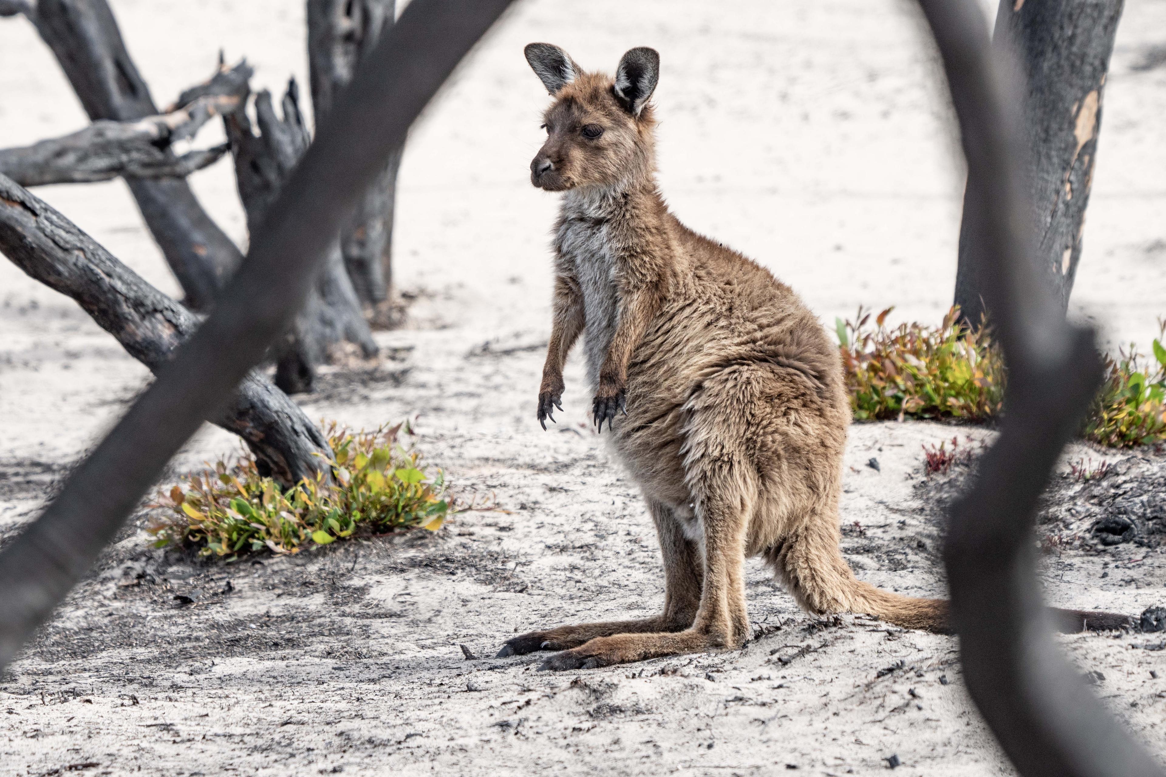 Kangaroo Island kangaroo after the 2019-20 fires. Image: Nicolas Rakotopare