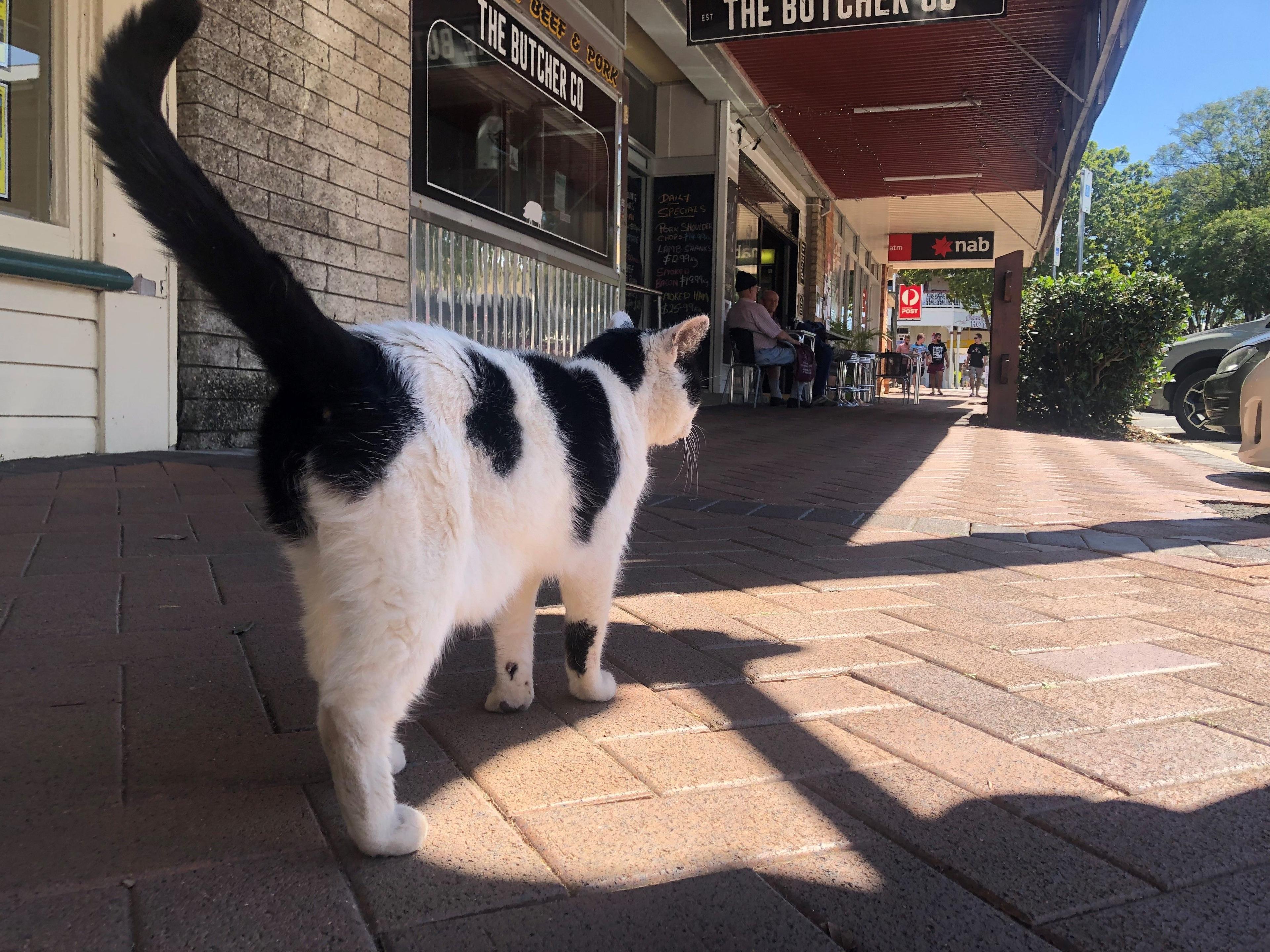 Cat prowling a Queensland country town. Image: Jaana Dielenberg