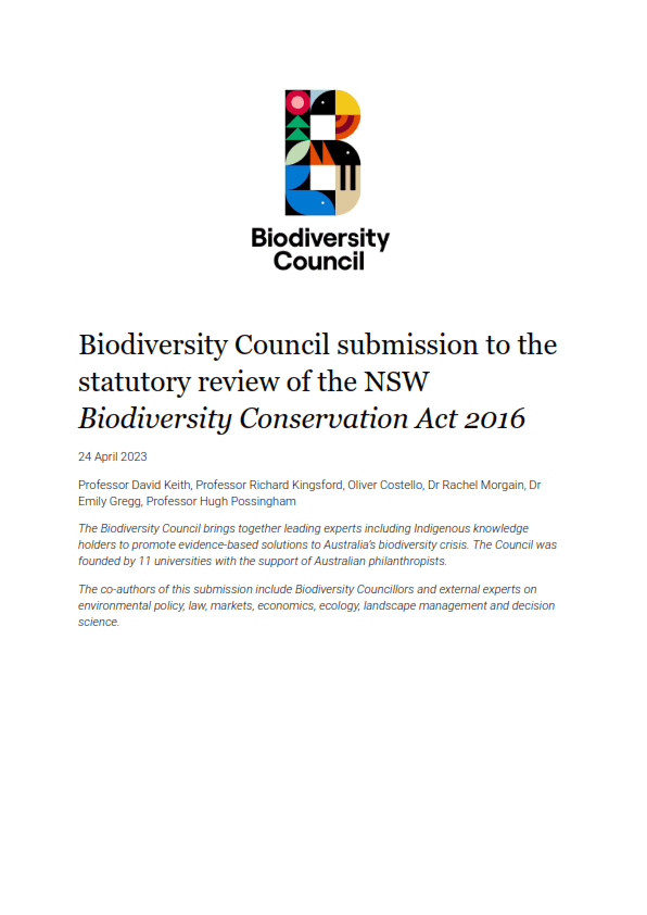 Biodiversity Council submission to the statutory review of the NSW Biodiversity Conservation Act 2016