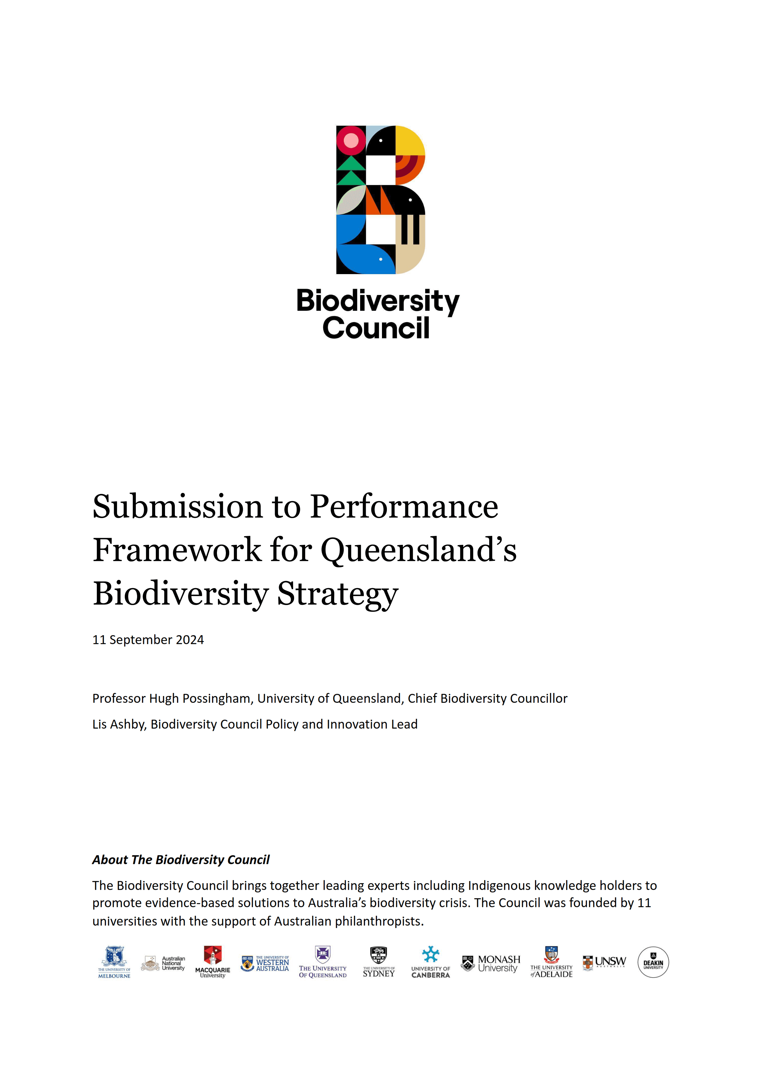 Our submission on the Performance Framework for Queensland's Biodiversity Strategy