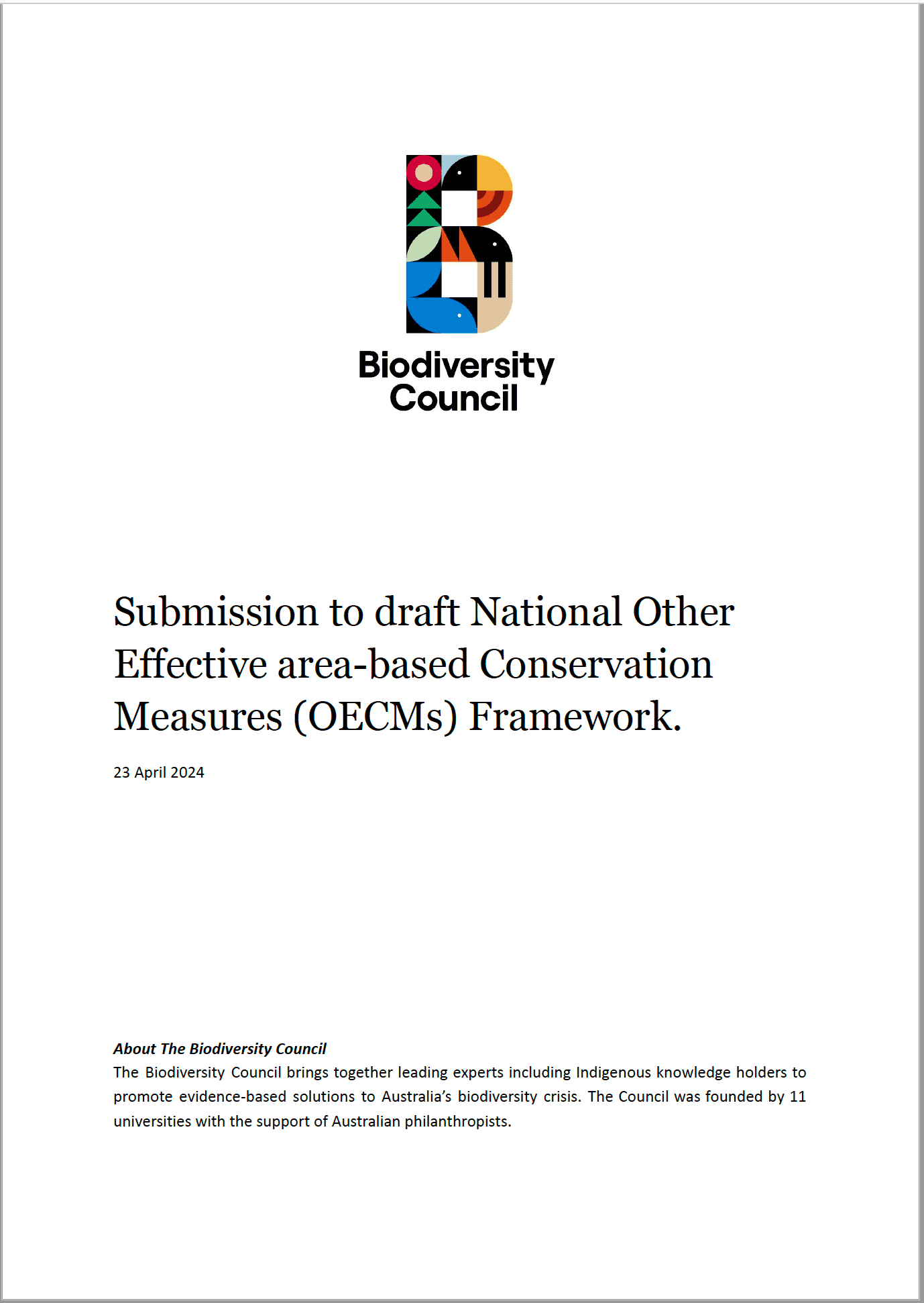 The Biodiversity Council welcomes the opportunity to provide feedback on the Department of Climate Change, Energy, the Environment and Water’s draft national other effective area-based conservation measures framework (‘the Framework’).