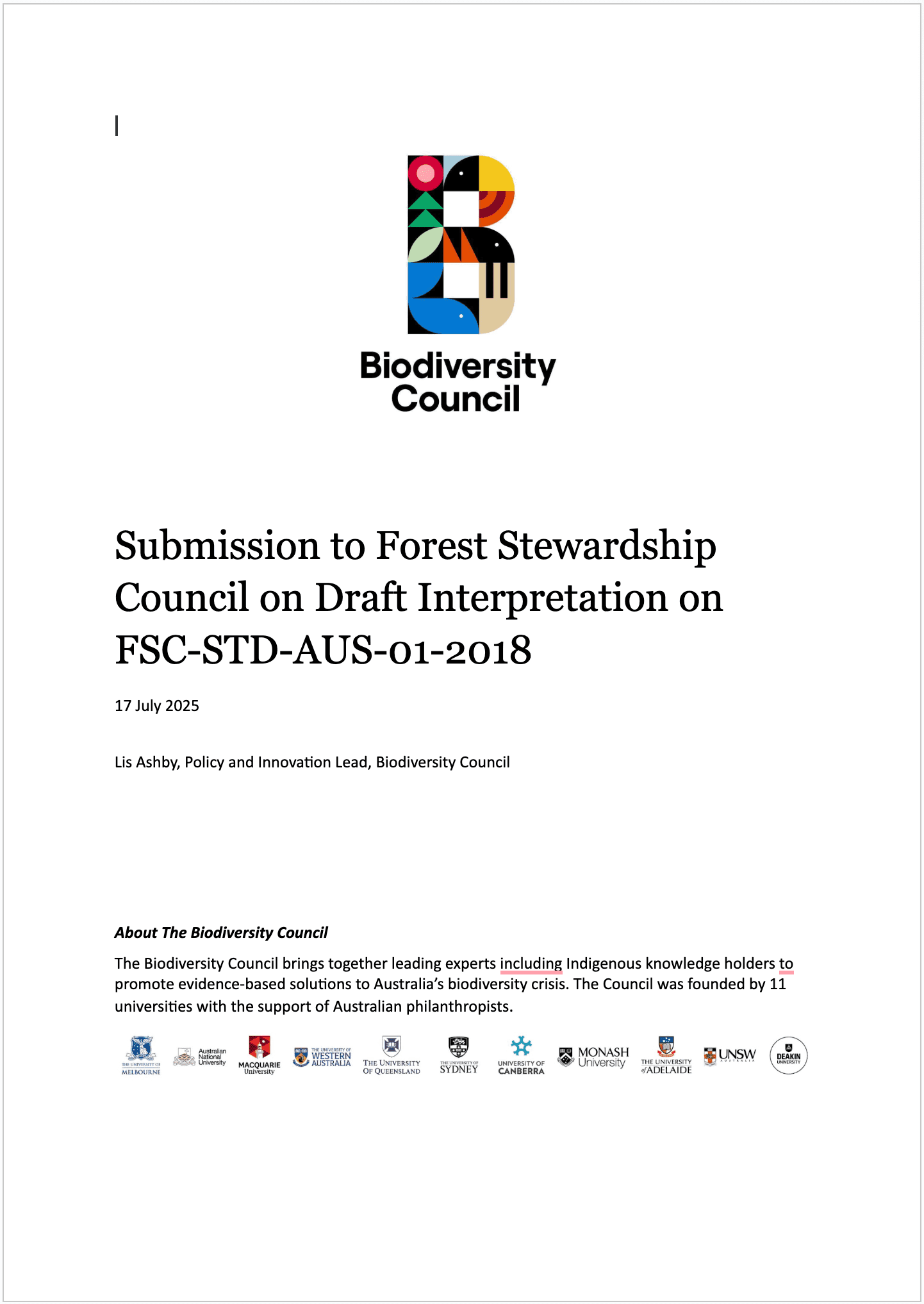 The Biodiversity Council welcomes the opportunity to provide feedback on Draft Interpretation on FSC-STD-AUS-01-2018 (the Standard).