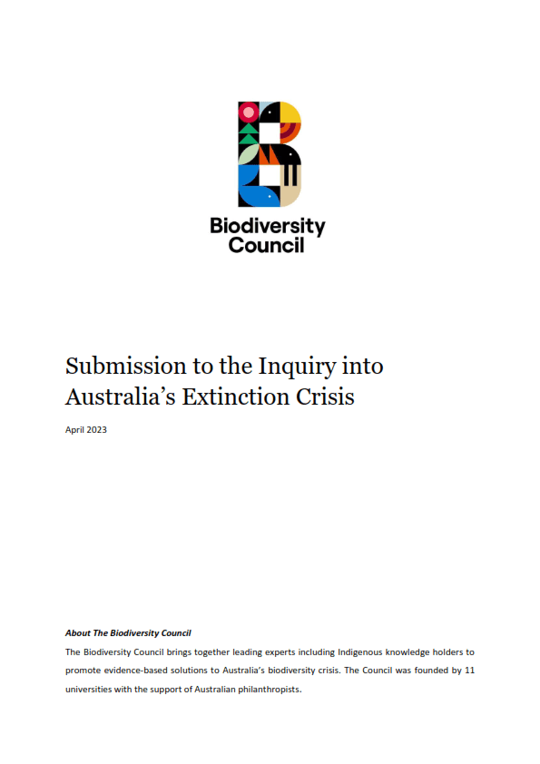 The Biodiversity Council's submission to the Federal inquiry into Australia's extinction crisis spells out 10 essential interdependent elements for new environmental laws, policies and institutes to halt biodiversity loss. For example, the need for new, legally-binding national environmental standards to be specific enough to deliver protection and restoration.