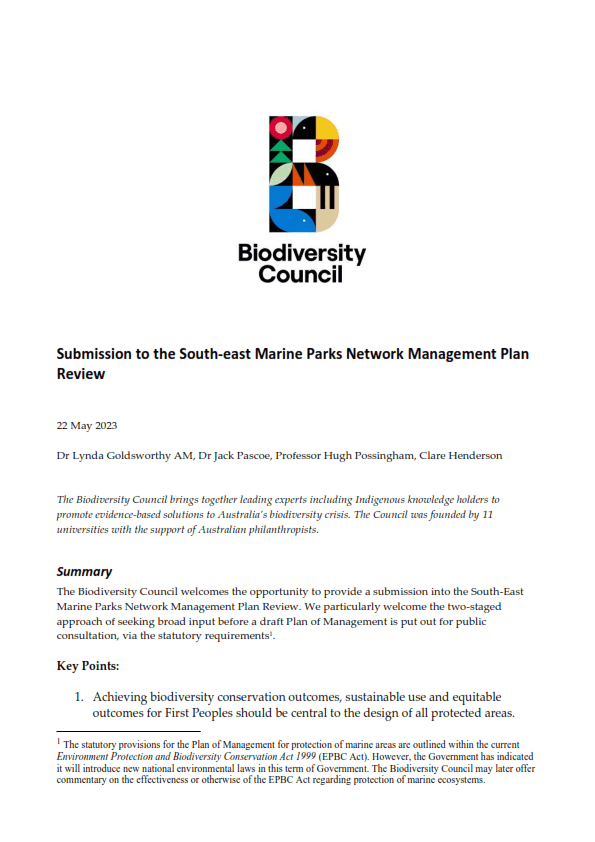 In our submission we explain that the South-East Marine Park Network requires reconfiguration, rigorous and transparent prioritisation with stakeholders, addition of new areas, and an increase the number of areas where fishing and mining are not allowed, to ensure the representation of all biodiversity in the region, including areas of high conservation and cultural value, biodiversity hotspots, and areas under greatest threat currently missing or outside of the current protected area.