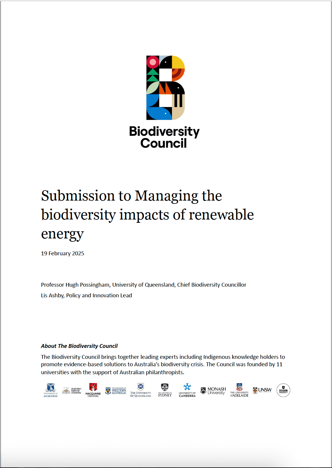 The Biodiversity Council welcomes the opportunity to provide feedback on Victoria’s approach to managing the biodiversity impacts of renewable energy, including the Draft Handbook for the development of renewable energy in Victoria (the Handbook) and the Discussion Paper - A better approach to managing the biodiversity impacts of renewable energy (the Discussion Paper).