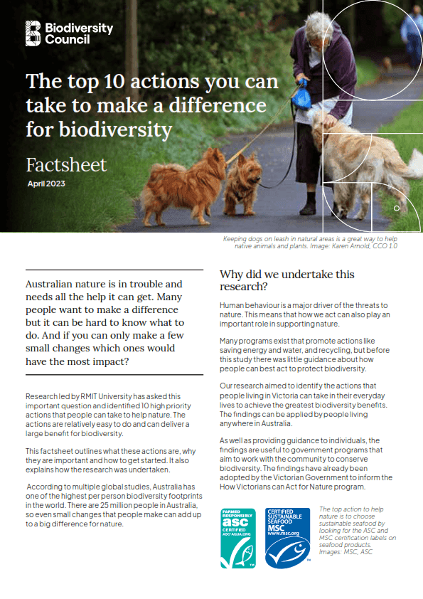 Research led by RMIT University has asked this important question and identified 10 high priority actions that people can take to help nature. The actions are relatively easy to do and can deliver a large benefit for biodiversity.